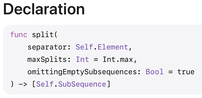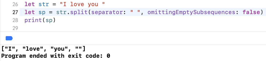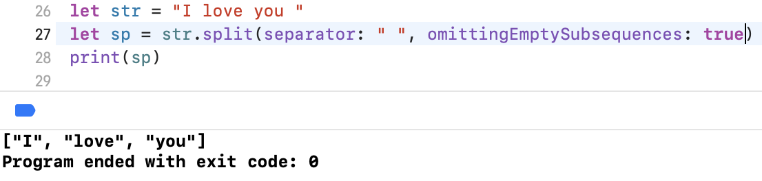 - ommitingEmptySubsequences는 true로 설정 시, 쪼개는 단위인 separator 뒤에 아무것도 없다면 출력되지 않는다.