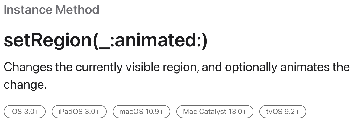 setRegion 메서드의 파라미터는 region과 animated로 구성되어 있다.