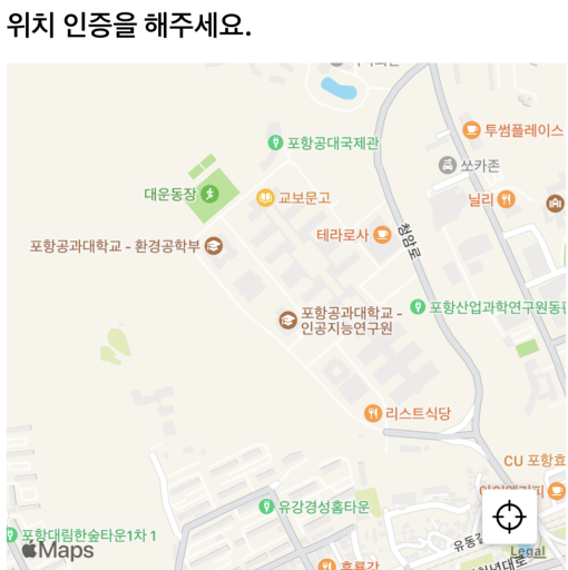 초기 위치를 포항 공대로 설정하여 defaultLocation에 저장해주었고
